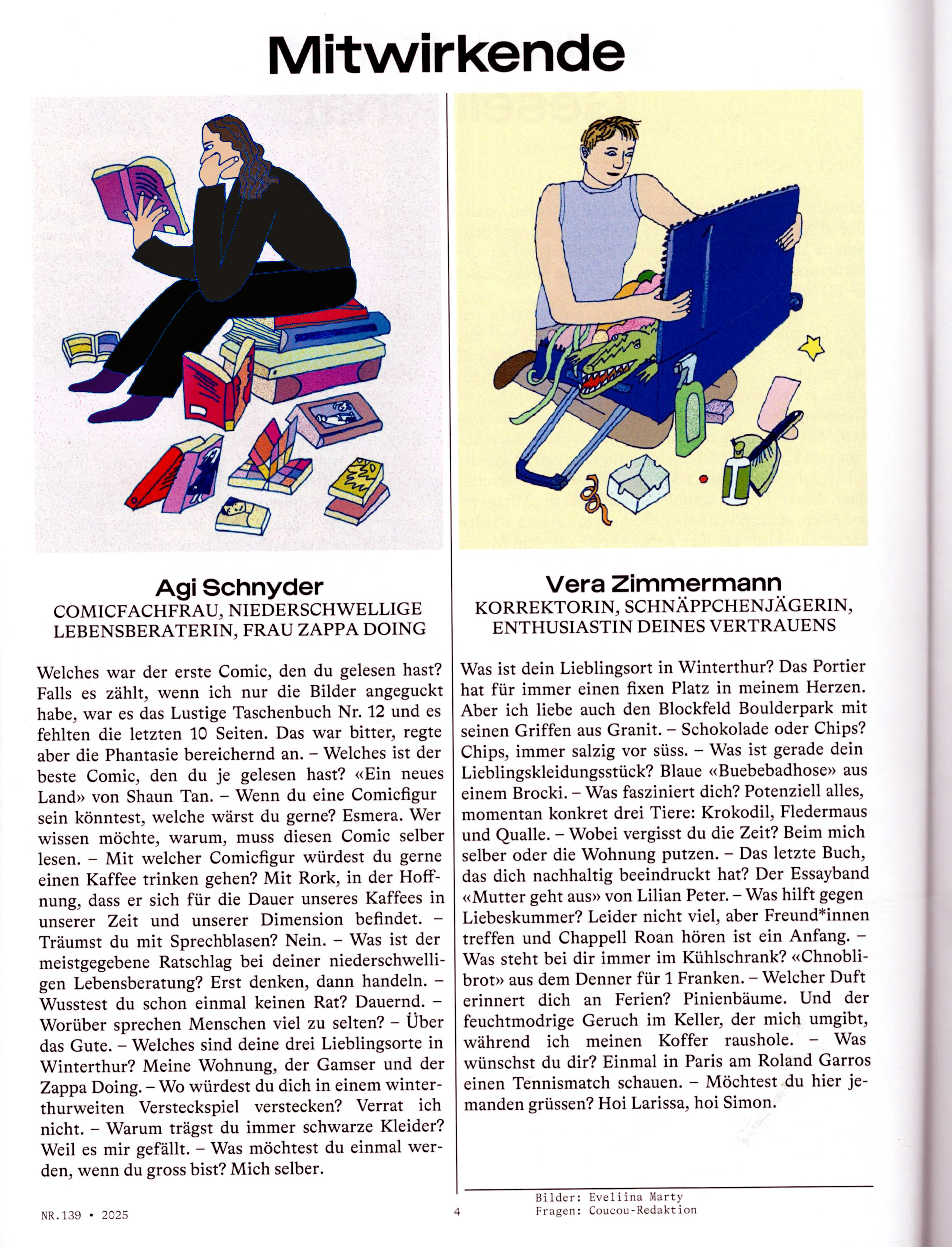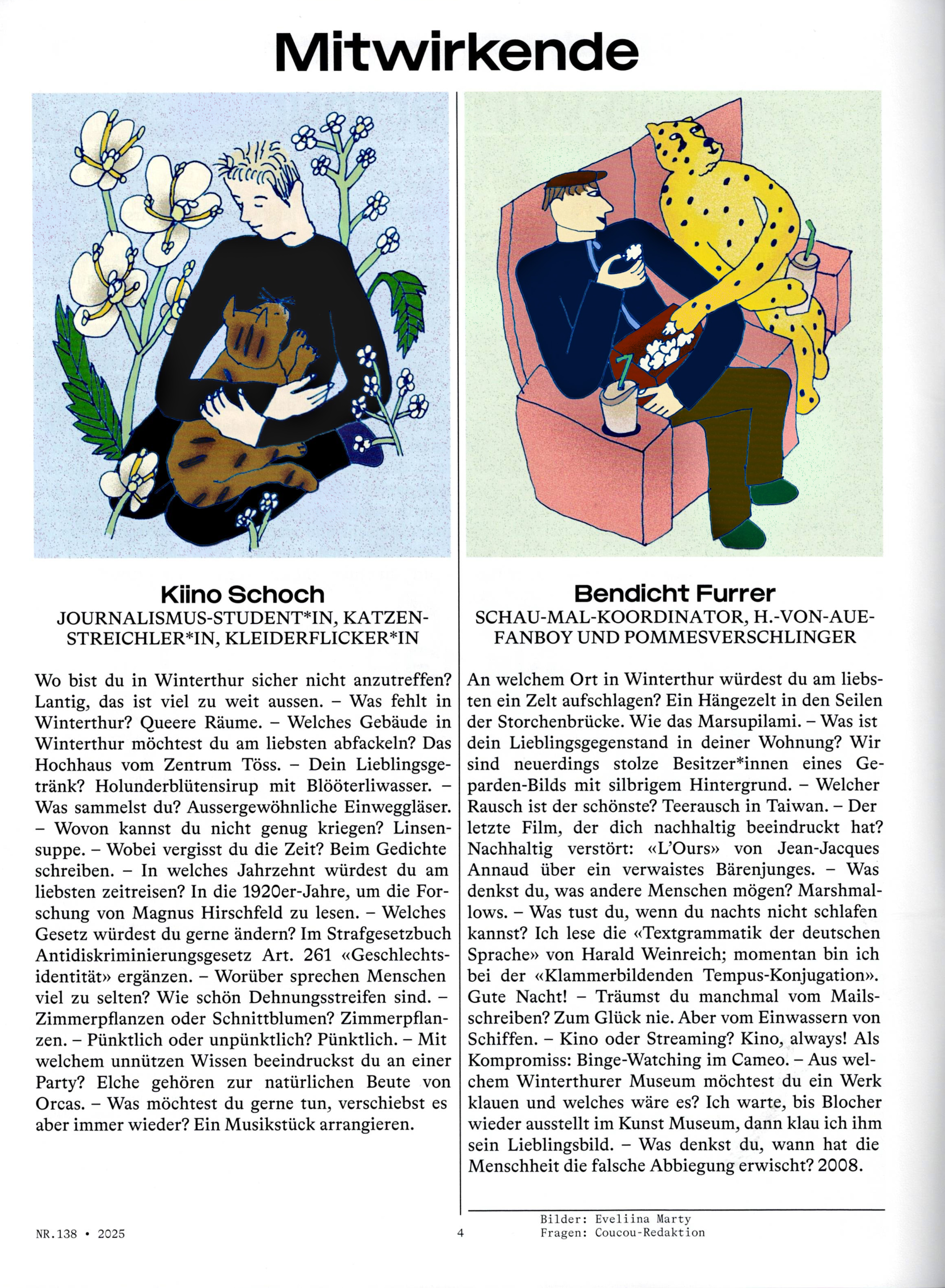 Sechs Portraits von Mitwirkenden des Winterthurer Kulturmagazins Coucou.